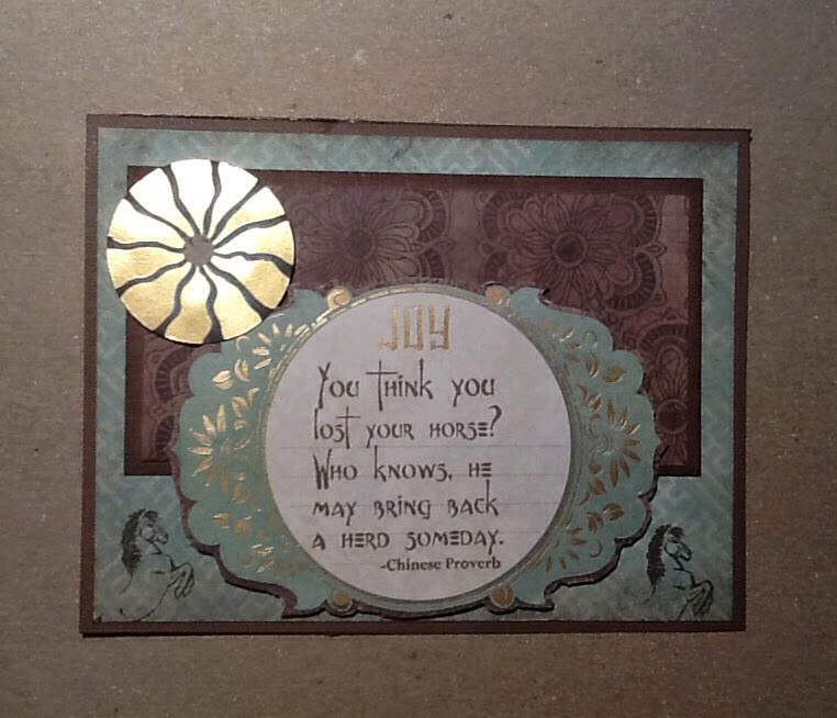 I liked this sketch and decided to turn it for this card. I used Mark's Finest Papers "Year of The Horse" stamp set.