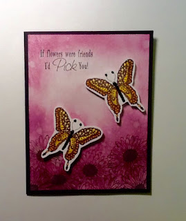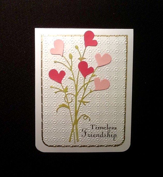 I used 2 stamps from Marks Finest Papers "Friends" stamp set for this card. I colored the flowers with Copic markers and used distress ink on the white edges. After I embossed the white card stock, I used the distress ink to give it just a little color. This was a very easy tutorial to follow and I like how easily it all came together.