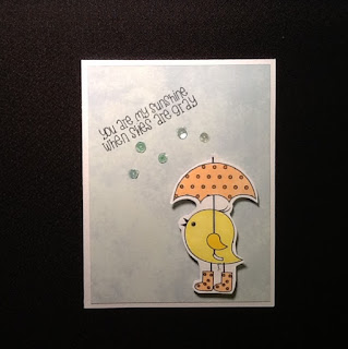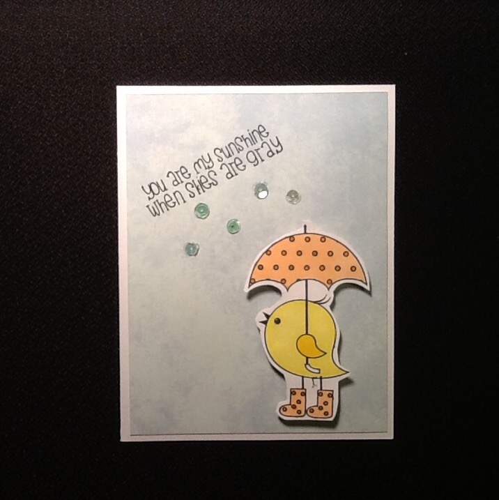 I used a cute little bird stamp for my focal point and some sequins for raindrops. What a perfect challenge this week, as we are going to be getting rain for the next 3-4 days!! Spring cannot come soon enough for me!